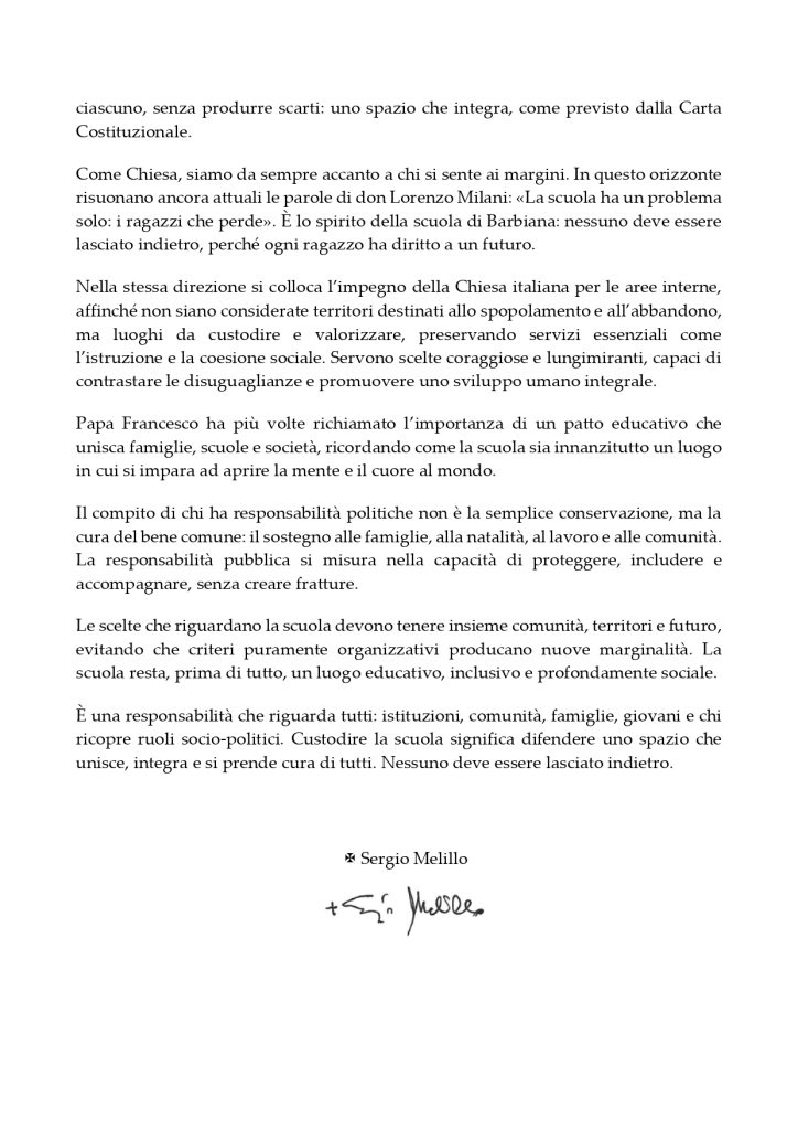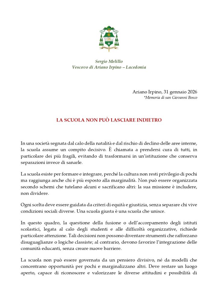 La scuola non può lasciare indietro: il Messaggio del Vescovo